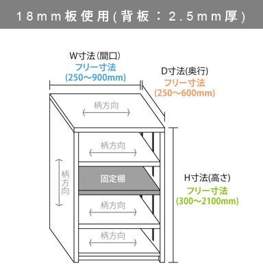 BOXのH寸法によって、付属する固定棚・プラスチックダボの数が変わります。